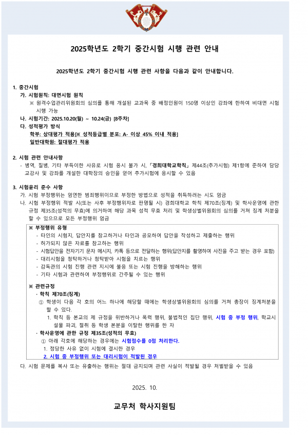 - 붙임5_대리시험 및 부정행위 조치 안내서식 포함 2.hwp (63.5K) 0회 다운로드 | DATE : 2025-10-10 09:23:31
