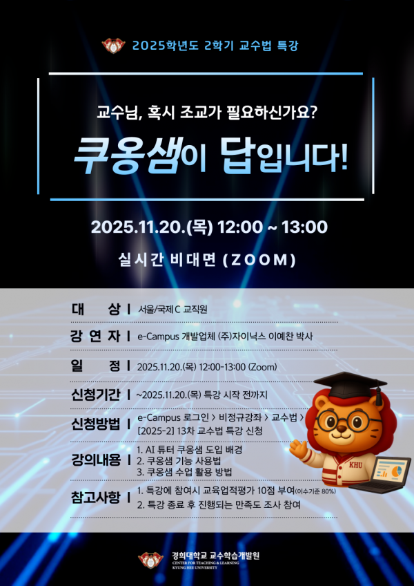 2025학년도 '교수님, 혹시 조교가 필요하신가요? 쿠옹샘’이 답입니다!'(~11/20)