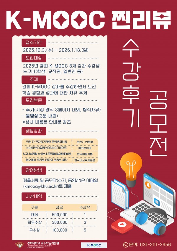 2025년 경희 K-MOOC 수강 후기 공모전 안내(~26.1.18)