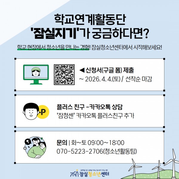 2026년 잠실청소년센터 학교연계활동단 ‘잠실지기’ 대학생 모집 안내(~4/4)