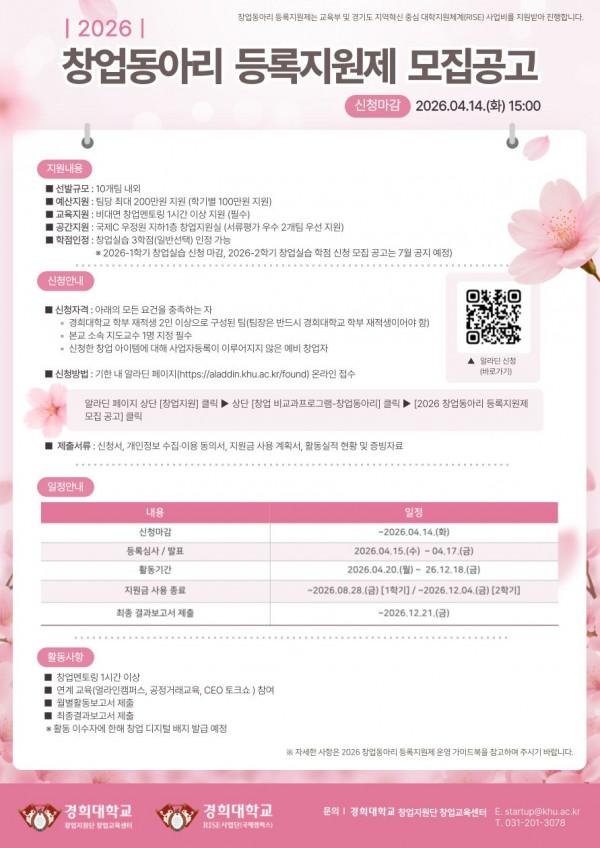 2026 창업동아리 등록지원제 시행 안내(~4/14.15시)