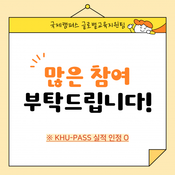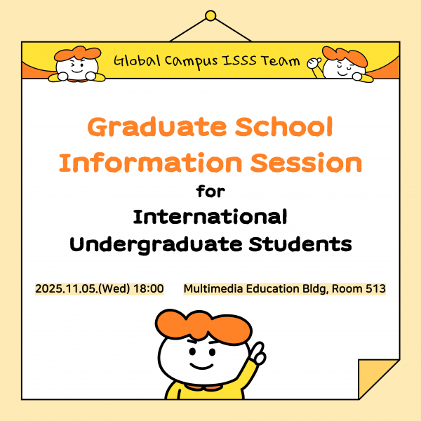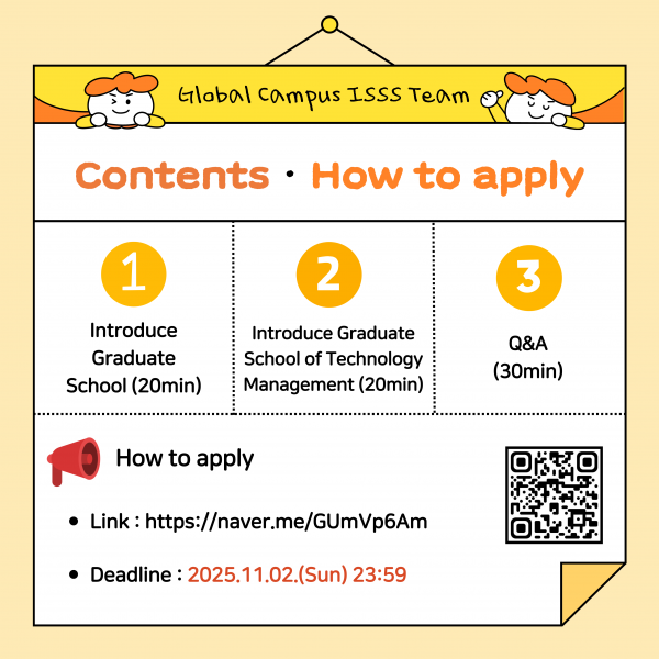 [글로벌교육지원팀] 2025-2 외국인 학부 유학생 대상 대학원 설명회 안내(~11/4 23:59) 페이지 정보 작성자 체육대학 댓글 0건 조회 1회 작성일 2025-11-03 16:57 본문 목록 다음글[국제처 국제교류팀]2025년 동계 SDGs 국제화연수(OCHR at Sonoma State University, USA) 참가자 모집 안내 25.10.31 댓글목록 댓글목록 등록된 댓글이 없습니다.