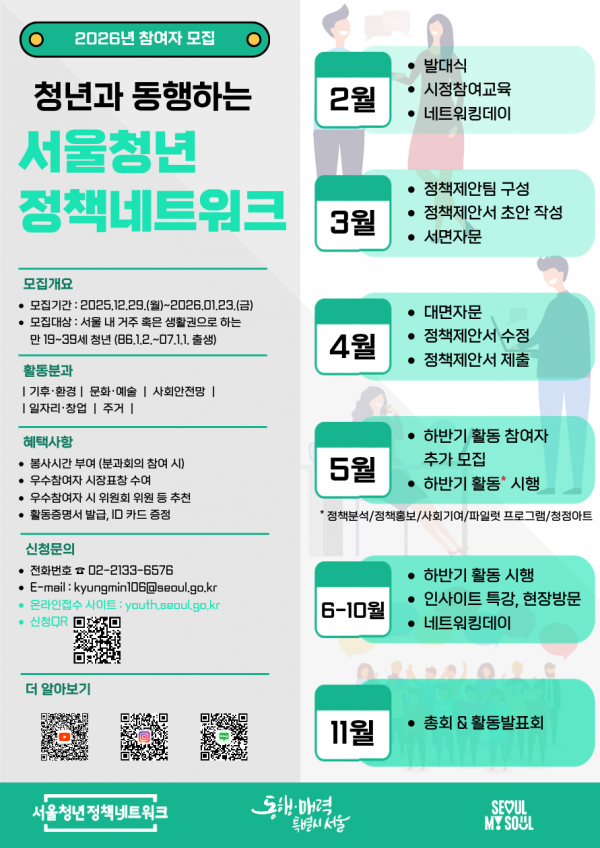 2026년 서울청년정책네트워크 참여자 모집 안내(~1/23) 페이지 정보 작성자 체육대학 댓글 0건 조회 75회 작성일 2025-12-30 11:08 본문 목록 이전글[인천관광공사] 상상플랫폼 1~2층 임대사업자 모집 안내(~1/26) 26.01.05 다음글마음 챙김 프로그램(2025-2) 안내 25.12.29 댓글목록 댓글목록 등록된 댓글이 없습니다.