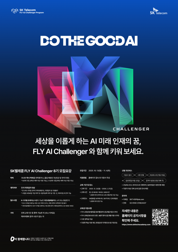 [SK텔레콤] FLY AI Challenger 8기 모집(~11/4) 페이지 정보 작성자 체육대학 댓글 0건 조회 17회 작성일 2025-10-13 10:39 본문 . 목록 이전글진안군청 직장운동경기부 테니스선수단 선수 공개채용(~10/24) 25.10.14 다음글★오늘마감★ [현대캐피탈] 2025 신입사원 채용(~10/13 23:59) 25.10.13 댓글목록 댓글목록 등록된 댓글이 없습니다.