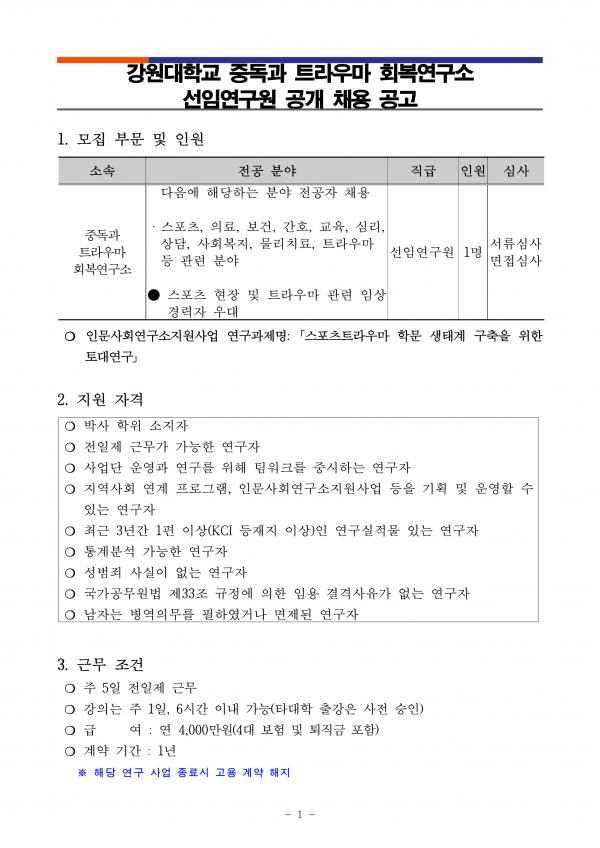 [강원대학교 중독과 트라우마 회복연구소] 선임연구원 공개 채용(~10/24) 페이지 정보 작성자 체육대학 댓글 0건 조회 17회 작성일 2025-10-14 09:38 본문 첨부파일 강원대학교 중독과 트라우마 회복연구소 선임연구원 공개 채용 공고.hwp (57.5K) 1회 다운로드 | DATE : 2025-10-14 09:38:36 목록 이전글[교내 추천채용] 토스 추천채용 안내 25.10.16 다음글진안군청 직장운동경기부 테니스선수단 선수 공개채용(~10/24) 25.10.14 댓글목록 댓글목록 등록된 댓글이 없습니다.