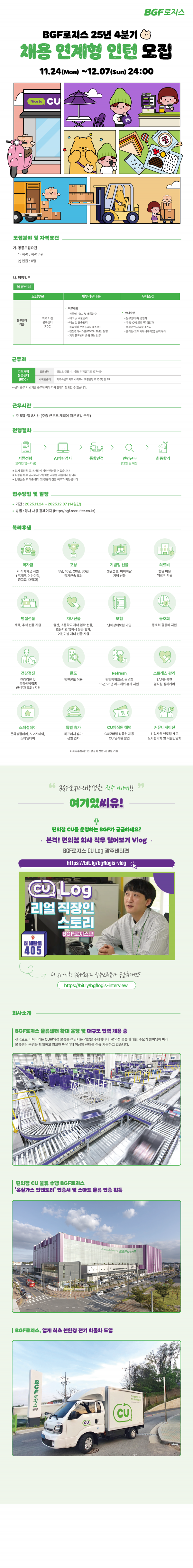 [BGF로지스] 2025년 4분기 채용연계형 인턴 모집(12/7 23:59)