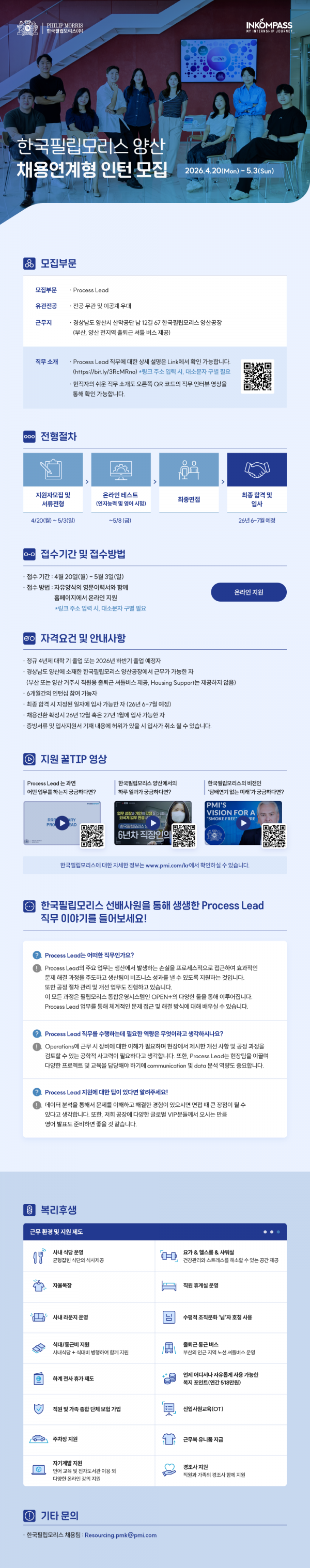 [한국필립모리스] INKOMPASS 채용연계형 인턴 모집 안내(~5/3)