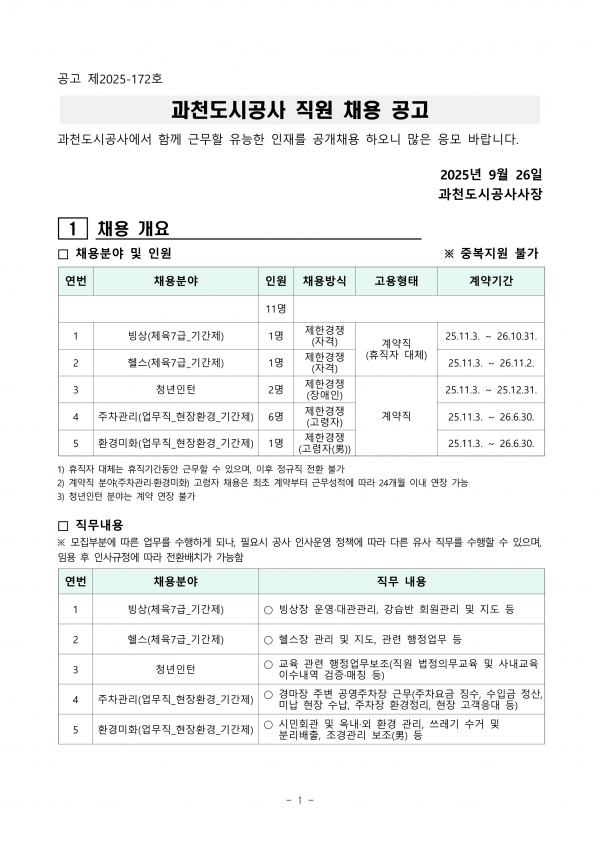 - ★과천도시공사 직원채용 공고문최종_250926.pdf (263.8K) 0회 다운로드 | DATE : 2025-09-29 14:36:28
