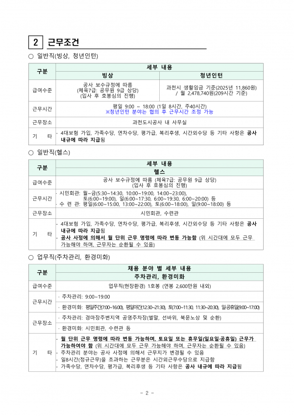 과천도시공사 기간제(일반직, 청년인턴) 채용공고(~10/16)