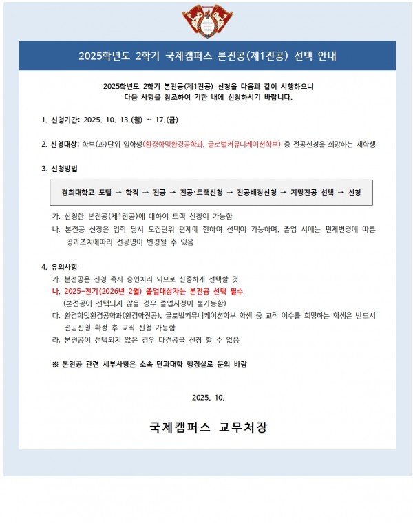 2025학년도 2학기 전공(본전공/다전공/부전공)·트랙 신청 및 포기 시행 안내