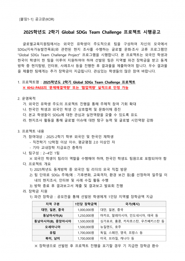 2025-2학기 Global SDGs Team Challenge 프로젝트 안내(~11/16)