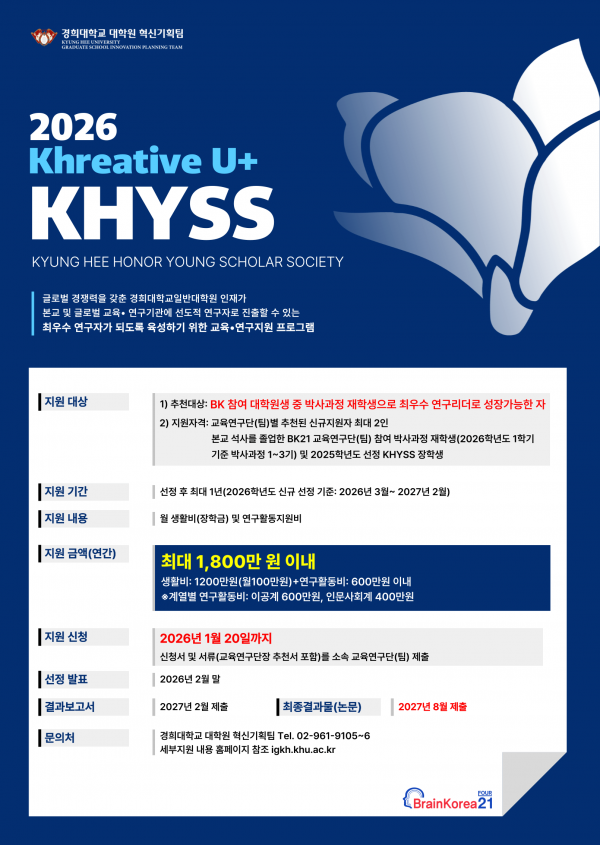 [혁신기획팀]2026 Khreative U+ KHYSS[Kyung Hee Honor Young Scholar Society] …