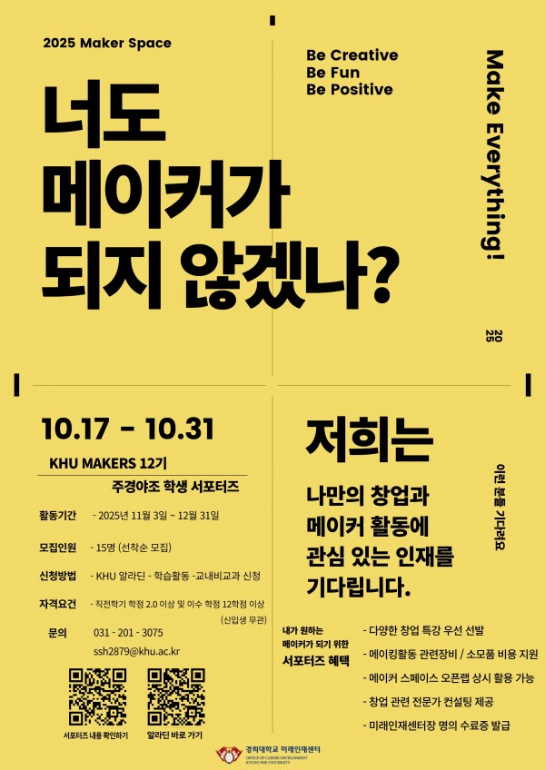 2025학년도 2학기 KHU-MAKERS 12기 주경야조(晝耕夜造) 학생 서포터즈 참여자 모집 안내(선착순)
