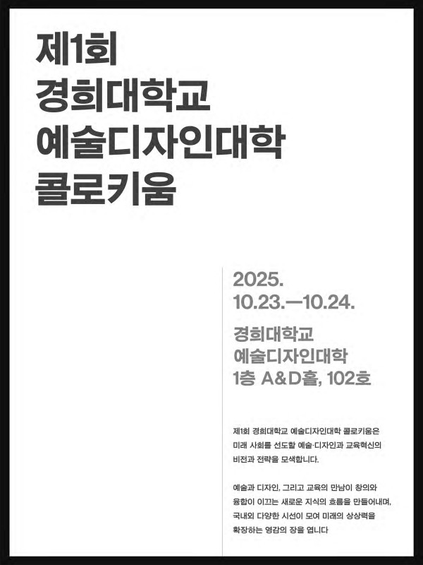 2025학년도 예술·디자인대학 콜로키움 「AI_AnD_Talk 2025」 개최 안내