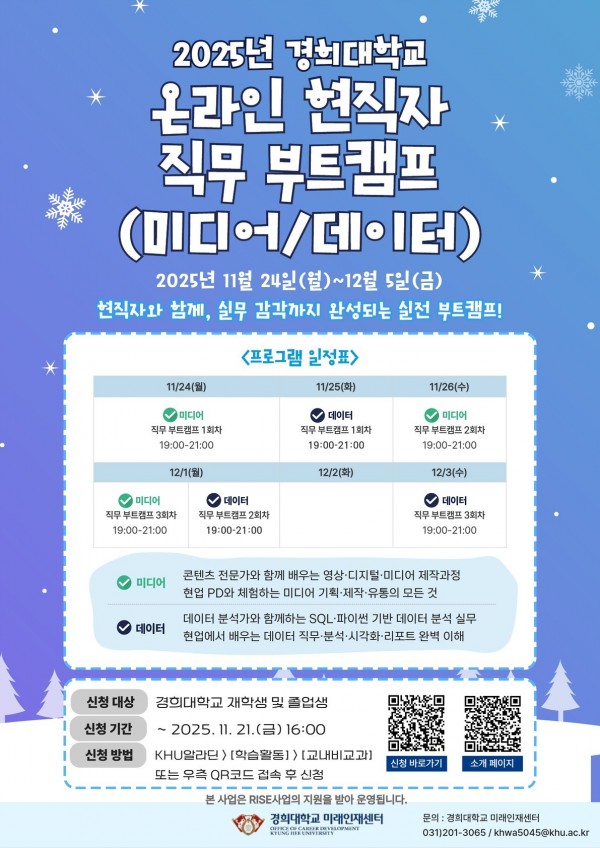 2025-2학기 온라인 현직자 직무 부트캠프(데이터/미디어) 프로그램 참여자 모집 안내(~11/21)