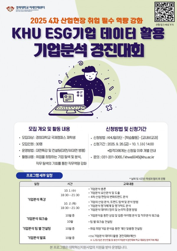 2025학년도 2학기 KHU ESG기업 데이터 활용 기업분석 경진대회 프로그램 참여자 모집 안내(~10/1)