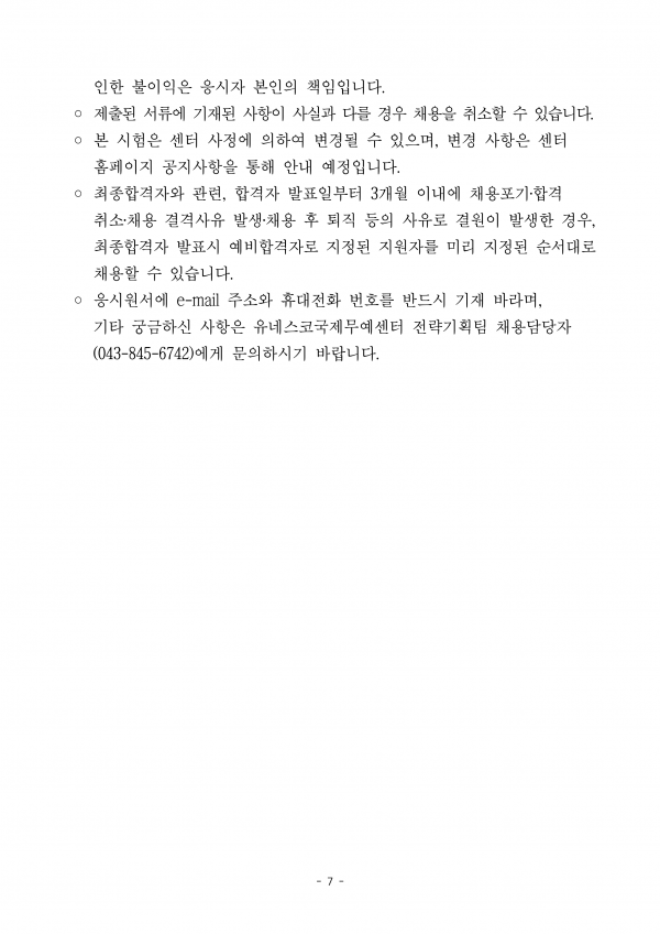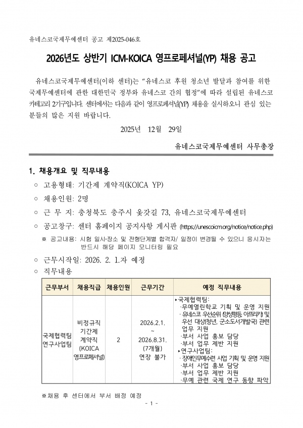 2026년 상반기 유네스코국제무예센터 영프로페셔널 채용 공고(~1/7)