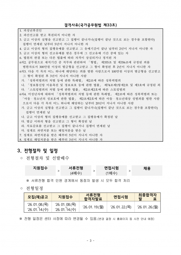 2026년 상반기 유네스코국제무예센터 영프로페셔널 채용 재공고 페이지 정보 작성자 체육대학 댓글 0건 조회 190회 작성일 2026-01-12 09:56 본문 첨부파일 별지 묶음.zip (161.1K) 7회 다운로드 | DATE : 2026-01-12 09:56:20 목록 이전글안성시 탄소중립 지원센터 연구원 채용공고(~2/5) 26.01.21 다음글합천군시설관리공단 체육지도자 채용 안내(~1/19) 26.01.08 댓글목록 댓글목록 등록된 댓글이 없습니다.