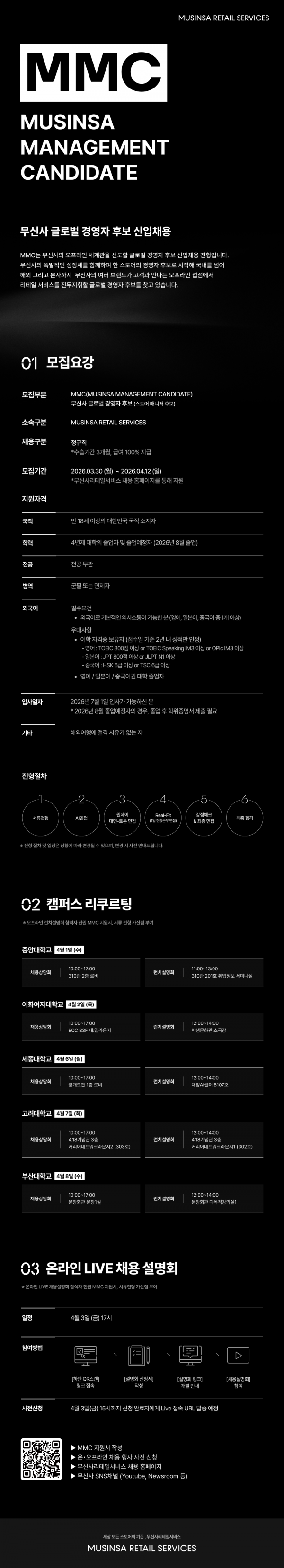 [무신사리테일서비스] MMC 무신사 글로벌 경영자 후보 신입채용 페이지 정보 작성자 체육대학 댓글 0건 조회 25회 작성일 2026-03-30 10:44 본문 목록 이전글서울시 어울림플라자 시간제 인력 채용 안내(~4/10) 26.04.06 다음글[보령 CHQ] Strategy Investment Group Analyst 채용 (~채용시 마감) 26.03.30 댓글목록 댓글목록 등록된 댓글이 없습니다.